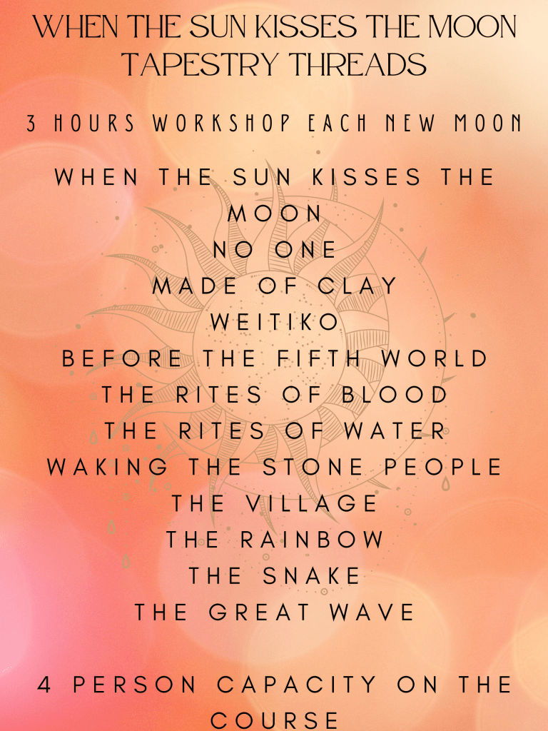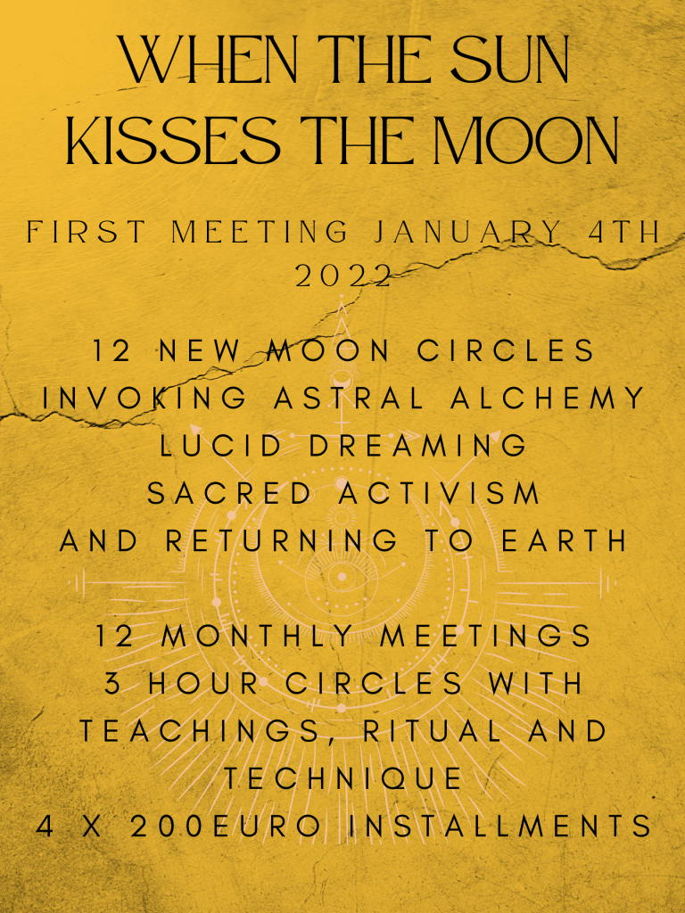 When the Sun Kisses the Moon is the embarking of Your Mythic Journey. This journey invites us all to step into the realm between human and divine and allow ourselves to become beacons of our own light to guide home to earth and true human family.