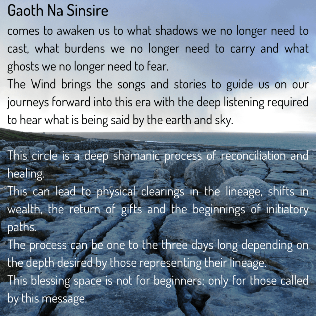 Gaoth na Sinsire is a gathering of tirbal representatives come together to bless unblessed, dance the fallen and raise the spirits to be released.