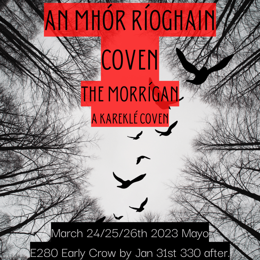 On the 24th-26th of March we converge the coven to celebrate the Three Faces of the Fierce Phantom Queen; Badb, Macha and Morrigú in Partry House, Mayo.