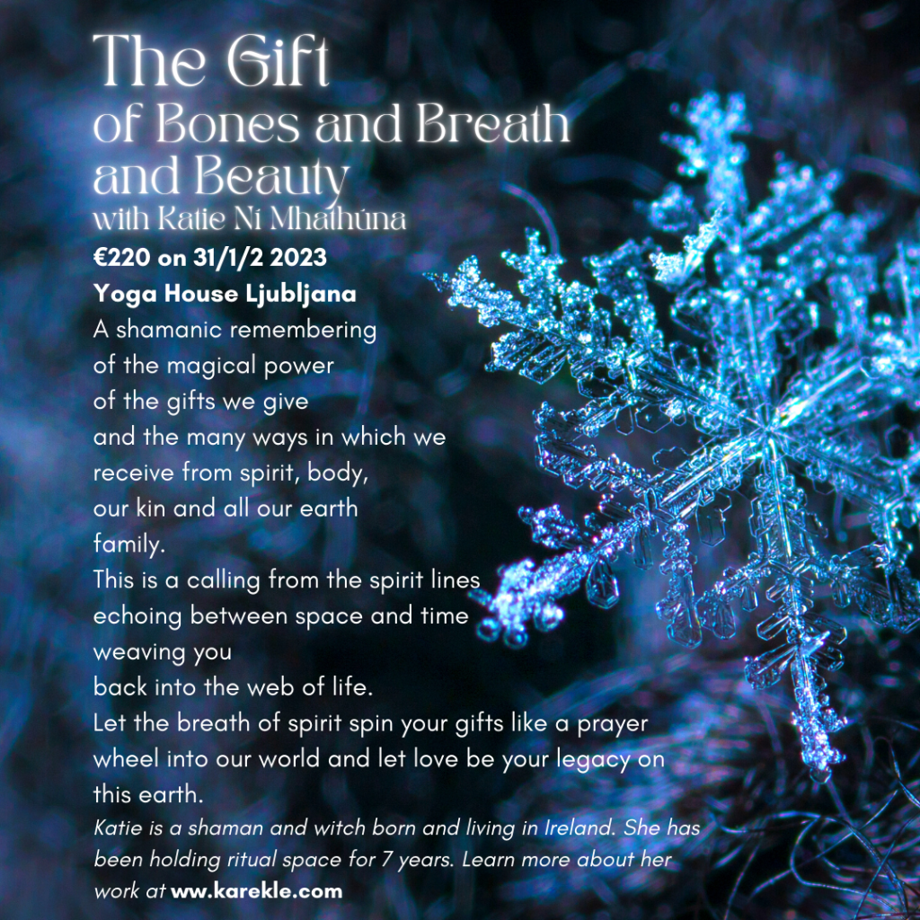 If you are wishing to manifest beyond karma in the world and offer back unconditionally to sources of inspiration, vitality, love and humanity then please join us in the blessings of The Gift; of Bones and Breath, and Beauty.