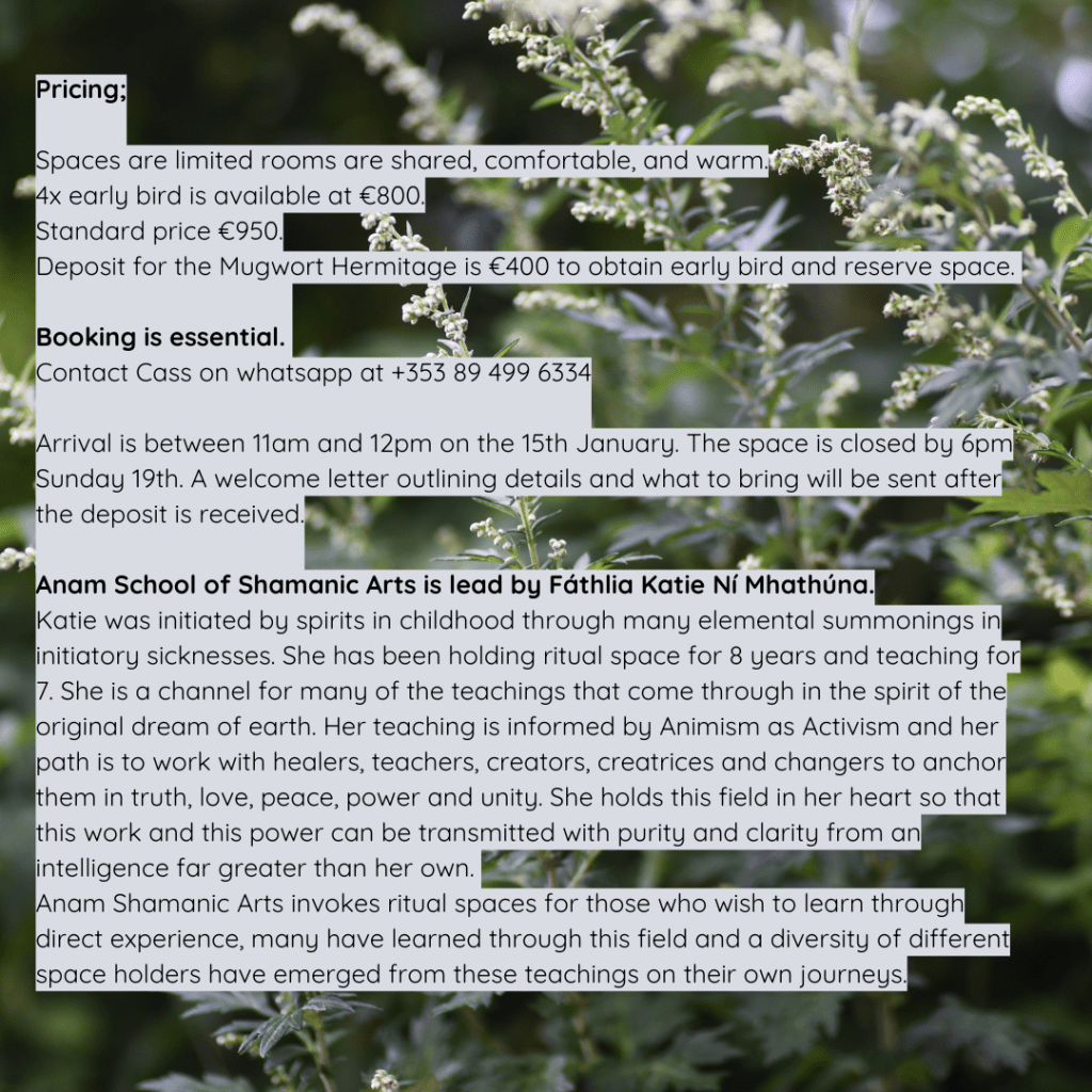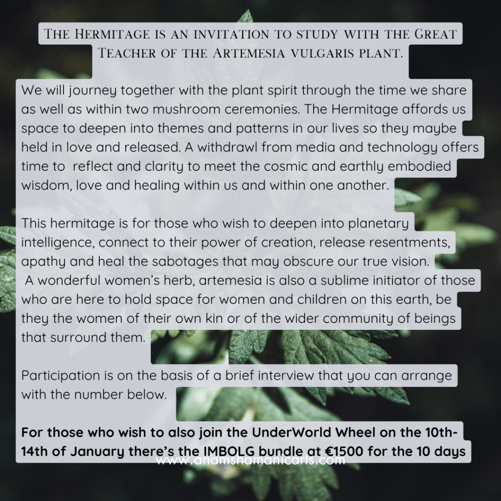 The name for mugwort as gaeilge is Mongach Meisce. Mongach in the irish language means ‘maned’ or ‘long haired’ as well as ‘bushy’. ‘Meisce’ means ‘drunk’ or ‘intoxicated’.